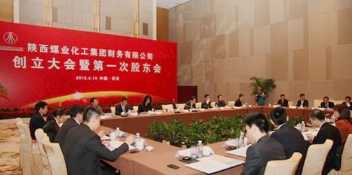 会议由西安开源国际投资有限公司总经理桂泉海主持。会上,陕西省银监局非银处副处长余爽宣读了《中国银行业监督管理委员会关于陕西煤业化工集团有限责任公司筹建企业集团财务公司的批复》;会议审议并通过了《财务公司筹建工作报告》、《关于成立财务公司议案》、《公司章程》、《选举第一届董事会成员的议案》和《选举第一届监事会成员的议案》。同时召开了财务公司第一届董事会第一次会议、第一届监事会第一次会议。