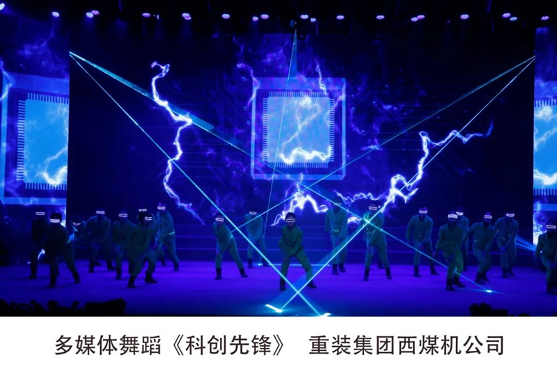 多媒体舞蹈《科创先锋》,以现代舞和魔术表演相结合的艺术形式,生动展现了赵亦辉及其团队探索、研发10米超大采高煤机装备,将其推向世界的突破,颂扬科技工作者的创新精神与爱国情怀,展示科技创新的力量与魅力。